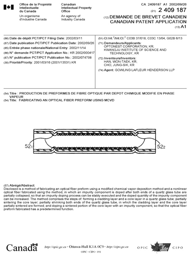 특허 | (캐나다) Fabricating an optical fiber preform using MCVD 페이지 정보 작성자 관리자 작성일11-08-05 21:26 조회20,931회 댓글0건 관련링크 이전글 다음글 목록 본문 (캐나다) Fabricating an optical fiber preform using MCVD 댓글목록 등록된 댓글이 없습니다. 이전글 다음글 목록