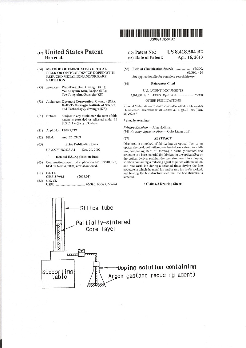 특허 | (미국)Method of fabricating optical fiber or optical device doped with r…