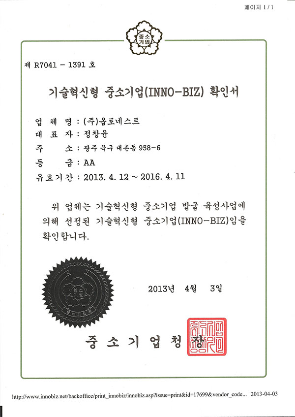 인증 | 기술혁신형 중소기업(INNO-Biz)확인서 페이지 정보 작성자 관리자 작성일13-05-23 09:29 조회21,554회 댓글0건 관련링크 이전글 다음글 목록 본문 기술혁신형 중소기업(INNO-Biz)확인서 댓글목록 등록된 댓글이 없습니다. 이전글 다음글 목록